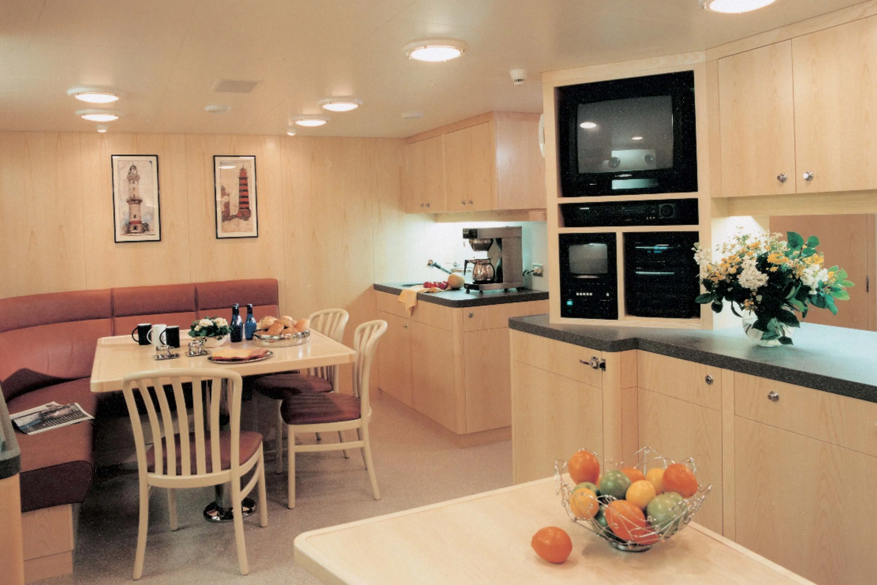 The primary stipulation of the owner of the 47.30-metre Vava was that he should enjoy the most peaceful long-distance cruising possible. In response, Feadship managed to surpass previous standards of sound-attenuation by building certain of the hull’s structural elements stronger than necessary. Noise transmission was also reduced via vibration breaks in the pipework and the establishment of a sound resistant box around the engine room. Furthermore, void spaces were specially sized to reduce airborne noise, while the entire interior ‘floated’ within the hull, mounted on rubber strips built into the structure.
