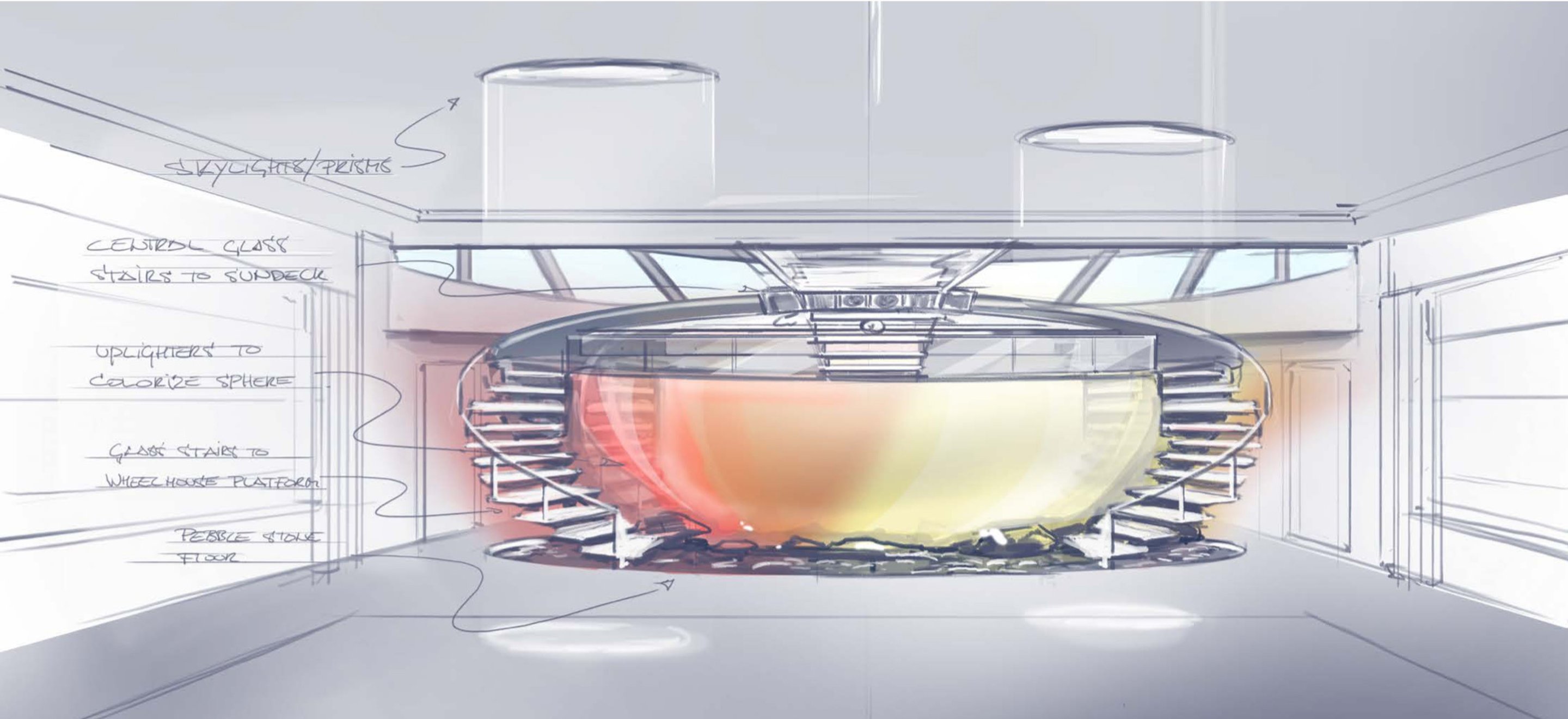 The Feadship Sports Yacht offers a fresh take on how an exceptionally swift Feadship might look like. This design exploration includes a full-sized glass-bottomed pool, open wheelhouse and mega-sleek exterior. A state-of-the-art propulsion system that deploys water jets rather than propellers add to the fast flavour.
