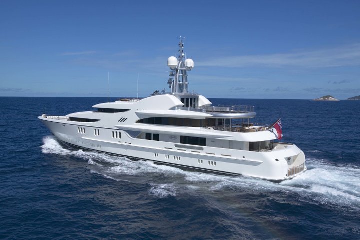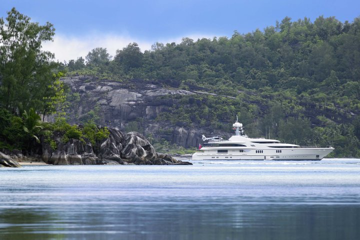 Anna’s timelessly modern exterior is unique in the way her style and layout were designed to accommodate keynote interior features required by the owner. Prime examples are the forward-facing observation lounge and the desire for a private outdoor area next to the master stateroom. The overall profile is sumptuously streamlined and the way her exterior colours are harmonised with those of the helicopter also set the standard for the fastidious attention to detail found throughout. In 2022 Anna returned under the name Firebird to the craftsmen who built her for an exhaustive refit, including an 2.50 metre extension.