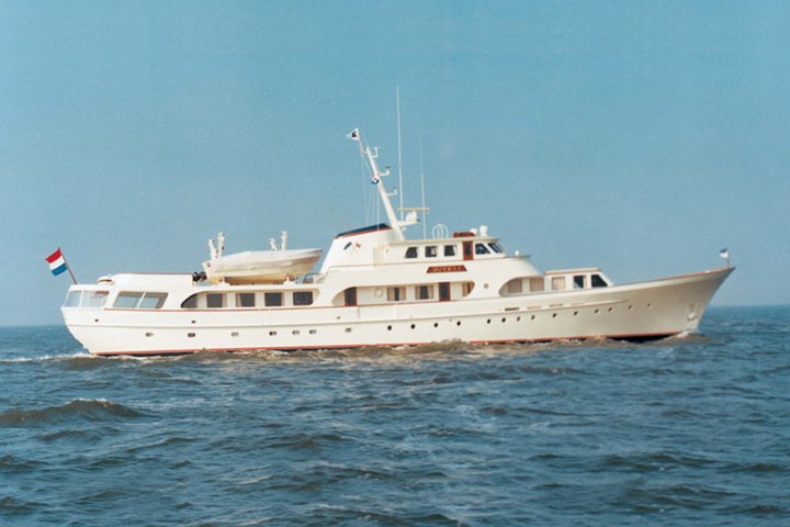 Upon taking delivery of the 35.42-metre Jardell in August 1970, her delighted owner immediately decided to have a larger yacht built. Also built under the name Jardell, she was immediately renamed Big R at her delivery in September 1973. This new 45.00-metre yacht was equipped with the very latest technology, including Vosper stabilizer fins, a bow thruster, and – a first for Feadship – a satellite navigation system.