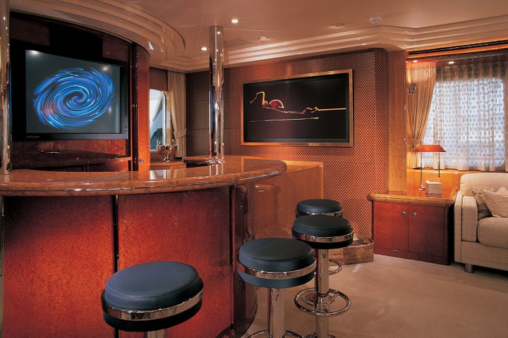 Detroit Eagle meets three seemingly contradictory requirements: transatlantic capability, a shallow draft for navigating The Bahamas and a top speed in excess of 30 knots. This was achieved thanks to a unique dual propeller/water jet set-up, which offers the optimal combination of efficiency at low speeds and over 32 knots velocity when fully loaded. Power apart, Detroit Eagle is a luxury cruiser in terms of her amenities and comfort.