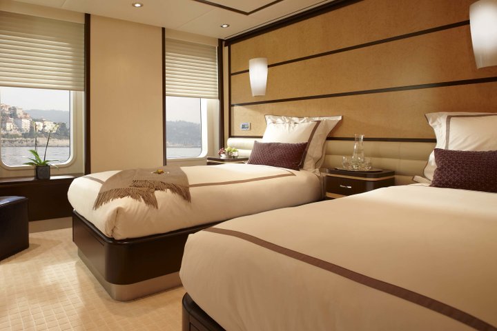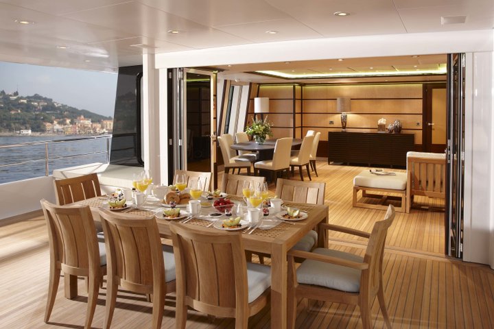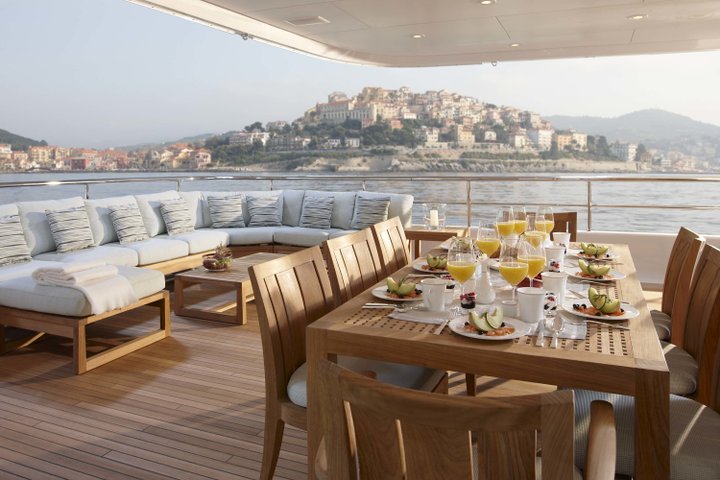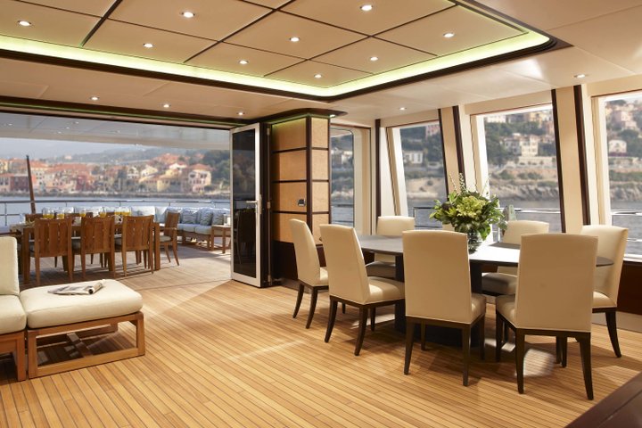 Offering an unparalleled standard of comfort and quality, the various spaces on board Gladiator – another F45 Vantage series yacht – closely reflect the modern cruising experience where owners and their guests (as well as charter parties) spend most of the time outdoors. The 44.65-metre Gladiator offers the ambience of a ‘beach house on the water’ with multiple al fresco entertainment options. Moreover, with the guest suites joining the owners’ stateroom on the main deck, exceptional panoramic views are available to all.