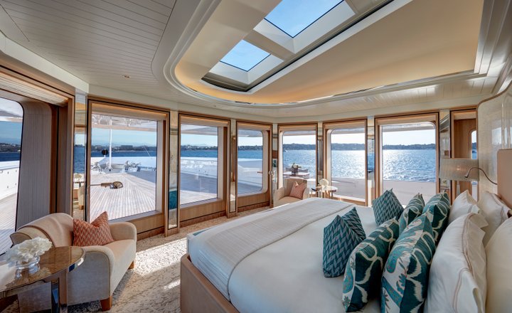 JOY was the first Feadship to have an exterior design by Bannenberg & Rowell since the legendary Jon Bannenberg passed away in 2002. The dynamic profile showcases the owner’s progressive insights into how yachts will look in the future, successfully blending a very narrow superstructure with super-wide sidewalks and four outside decks. This crisp and radical design incorporates some amazing surface geometry with countless concave contours in the superstructure and lots of surface texturing that defines the yacht’s shape. JOY was an incredibly intricate yacht to build and tested the Feadship fairing and painting teams to the absolute limit.