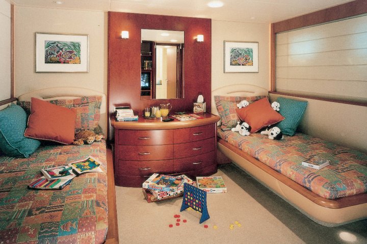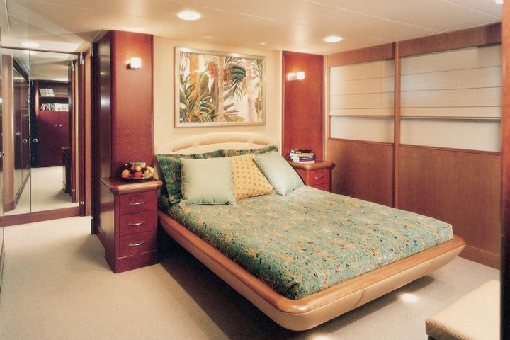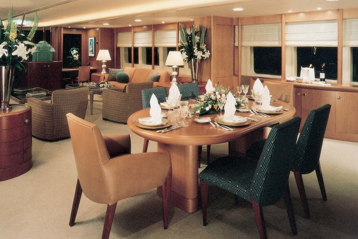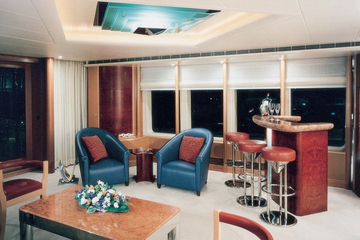 Katrion is the representation of how a magnificent full displacement yacht of this stature can remain very much family-oriented. From the private breakfast room and the welcoming choice of fabrics in the lounges and the staterooms to the abundance of facilities for both leisure and relaxation, Katrion has an intimate and charming ‘down-home’ feel. The custom-made, user-friendly wireless AMX panels mean all onboard can control the extensive TV and audio equipment a the touch of a pad – again, this is 1997! A second Katrion for the same owner would follow in 2003.