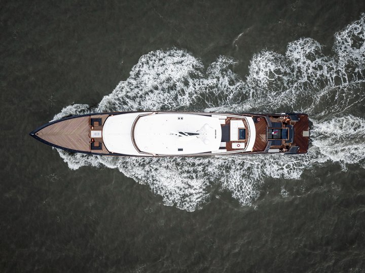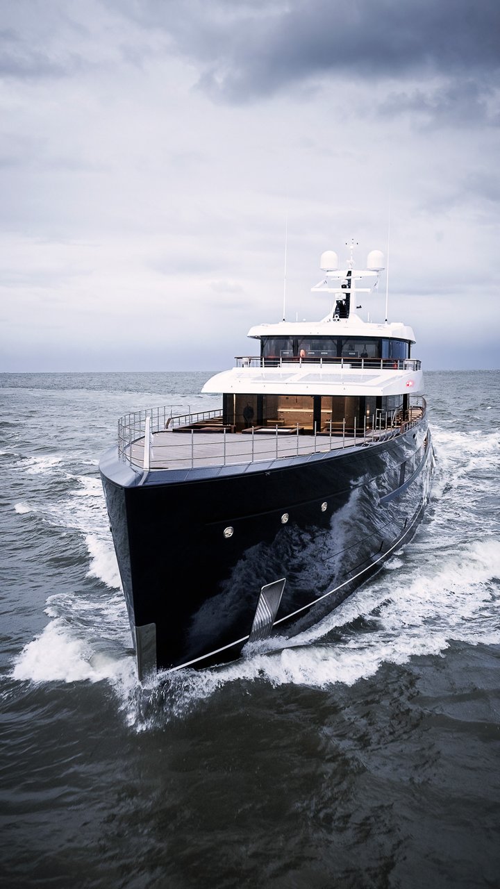 The 75.75-metre Feadship Les Cinq blends modern elegance with precision engineering. Her clean lines and generous 12.50 metre beam support a layout that balances luxury with privacy. The sun deck’s 6.5 by 4 metre infinity pool sets the tone for relaxed sophistication, complemented by panoramic salons, six serene staterooms and a full beam owner’s suite. Forward on the main deck lies a lavish VIP suite, complete with a private lounge and its own balcony. This exclusive space offers a peaceful escape, a retreat within the retreat. A beach club with spa and gym connects directly to the sea, while a vast tender garage holds everything needed for true exploration.