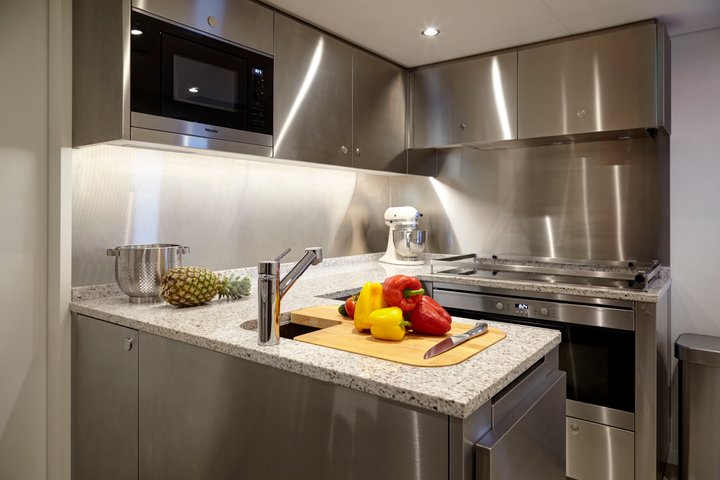 Letani has a contemporary exterior profile with elegant lines and large – often full-length – windows that ensure tremendous vistas wherever she travels. The length and shallow draught are very much linked to the intended use of exploring various parts of the world that are often out of reach to larger superyachts while retaining Feadship standards of quality. Letani’s open decks provide maximum entertainment and flexibility for the family and their guests. This 34.65-metre yacht also set a new Feadship record of just over two years between the first client meeting and launch.