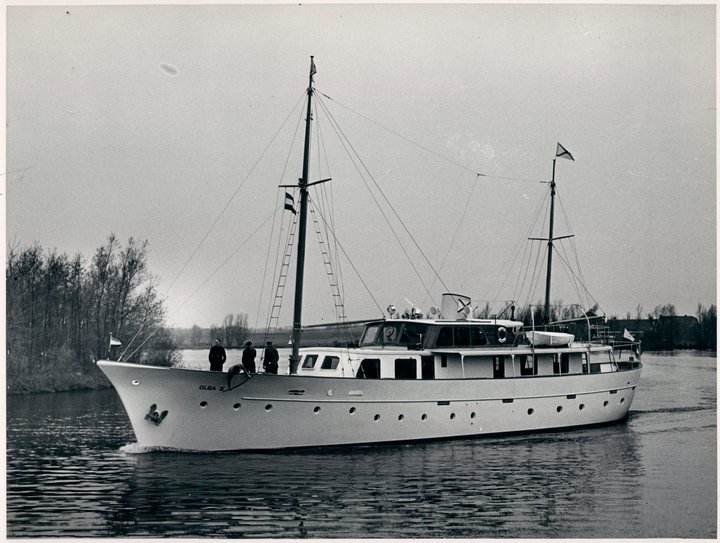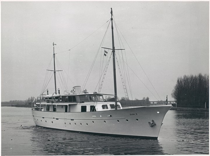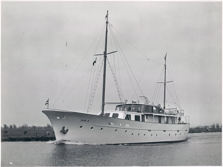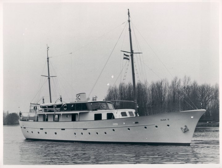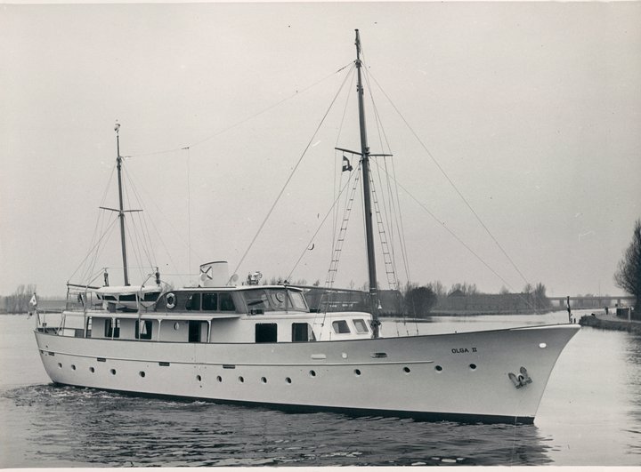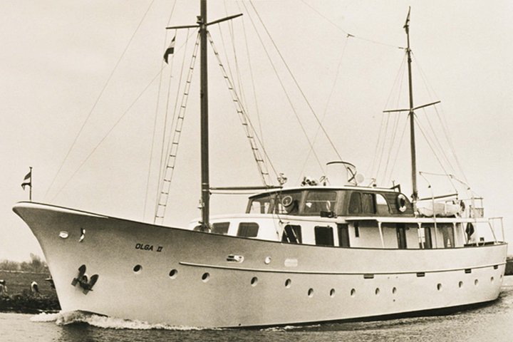 The 30.72-metre Olga II and 22.77-metre Ventura represented a significant landmark in Feadship's development. Jointly commissioned in the summer of 1952 by shipping magnate Mr Topic and his son-in-law Frua d’Angeli, their sheer size made headline news both at home and abroad. The fact that they were being built simultaneously at the same yard was seen as truly astounding. Both Ventura and Olga II gave immense impetus to the Feadship profile. Equipped with automatic pilots, air-conditioning (a first), central heating, evaporators for desalinating sea water into drinking water, radio-telephones, depth-sound systems and an electric anchor winch, they managed to redefine the meaning of state of the art.