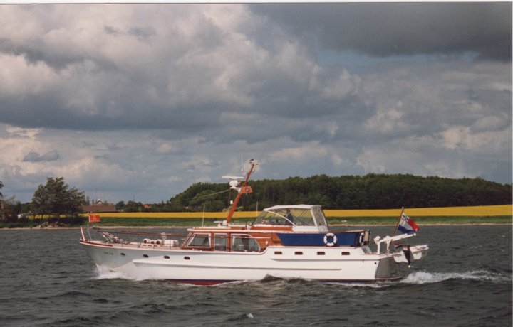 Ruo Sheras was built in 1965. Her name may be a clue as to how the boat was financed. Read from back to front, the name says: Our shares.