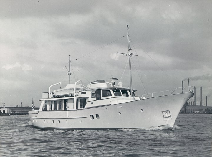 Tartar’s owner, a well-known architect from Seattle, was an experienced sailor with plans to make trips to Hawaii and Alaska with his new motoryacht. It was quite new in those days to give the steel hull a special ‘preservation treatment’, meaning sandblasting the steel skin plates then immediately spraying on layers of special compounds. The specially constructed keel also served as a heat sink for engine cooling water. After the sea trial, Tartar spent the winter of 1967 in the Mediterranean and then left for her home port of Seattle.