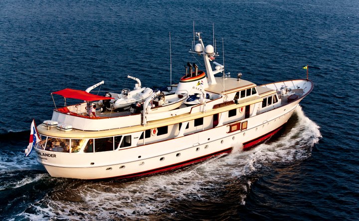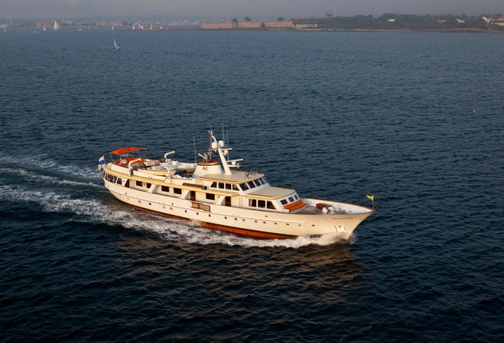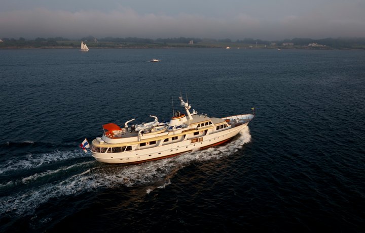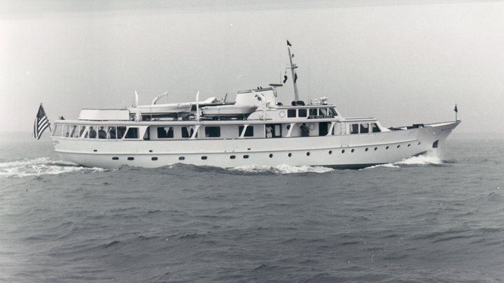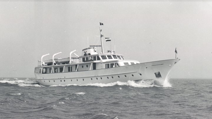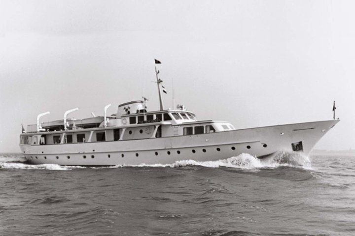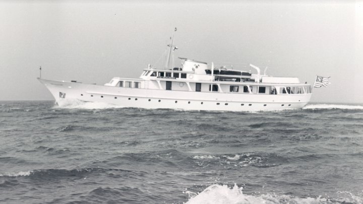 Malcolm Forbes famously owned several motor yachts since 1955, which he always baptised The Highlander, due to the Scottish origins of his family. In 1964 this third The Highlander was designed by De Voogt and built in Aalsmeer, and its 35.40-metre length and 6.90-metre beam broke the shipyard’s record. Mrs Forbes christened her on 11 March 1967, and shortly afterwards the couple embarked on a maiden voyage from Aalsmeer to New York via Istanbul.