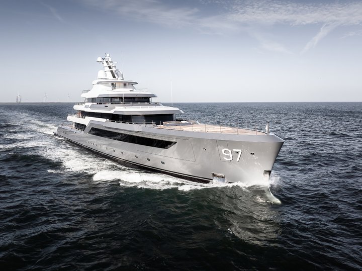 Valor pushes the boundaries of what an explorer yacht can be. Commissioned by a returning Feadship owner with a passion for remote cruising, she is built to transit the Northwest Passage and venture far beyond conventional horizons. Her steel hull is encircled by a two-metre ice belt and carries Bureau Veritas Young Ice 2 notation, underscoring her readiness for polar conditions. Innovation runs through every detail: a hybrid diesel-electric system developed by the Feadship Advanced Electrical Drive programme, a 5.34 MWh battery bank and solar array enable extended zero-emission cruising. Studio De Voogt’s striking design combines a dreadnought bow with walk-around decks and expansive outdoor spaces, while interiors by Bannenberg & Rowell bring together natural materials and sculptural features. From a contra-flow infinity pool to a fully equipped beach club, Valor balances strength, efficiency and comfort with unmistakable character.