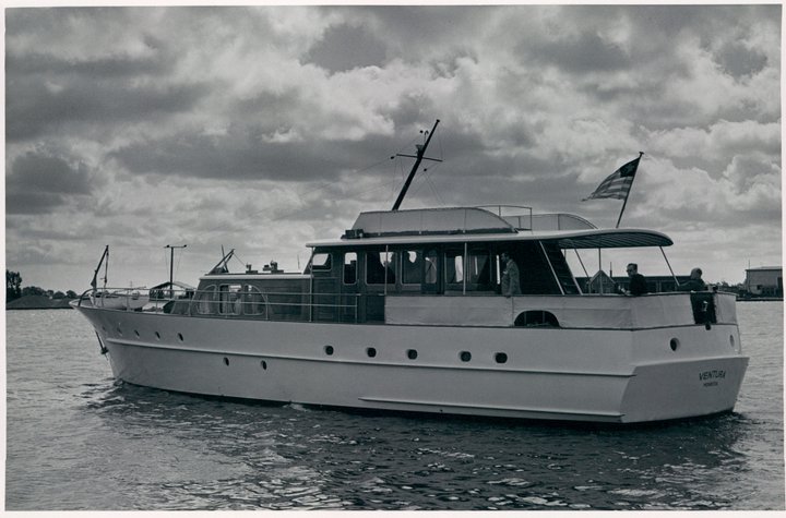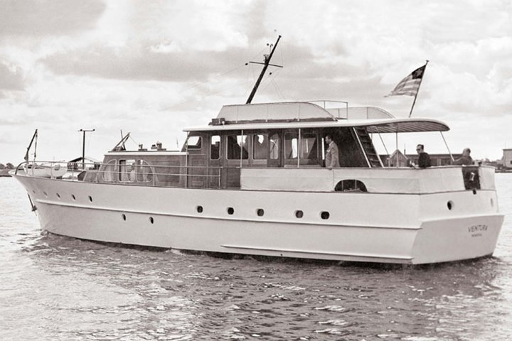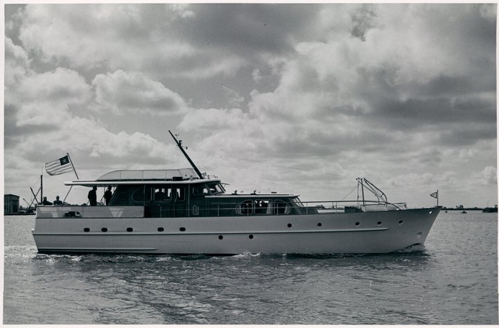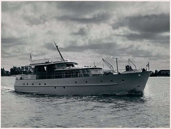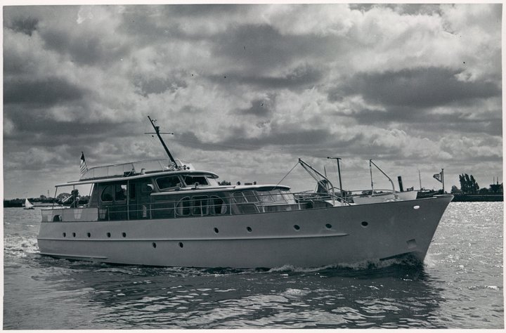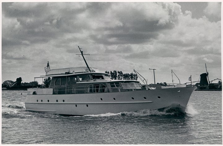 The 22.77-metre Ventura narrowly averted several disasters en route to her owner. Built largely outside, her corrugated iron covering was swept away during the devastating February 1953 storm that redefined Holland’s relationship with water. On the day of her launch, the ceremonies had to be postponed because of a manure heap fire at a neighbouring farm: The yacht itself was not in danger but Theo Van Lent was commander of the local Fire Brigade and this had to take priority! And when the yacht eventually reached the sea at the Hook of Holland, a chain came loose during another freak storm and she became snagged on an anchor of a centuries-old wreck.