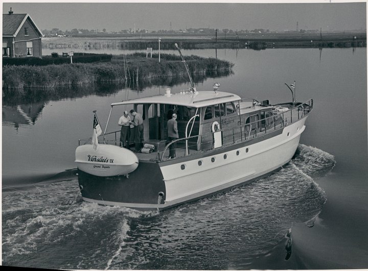 The 18.29-metre Versluis IV was built by Akerboom, one of the six yacht builders that came together at De Roode Leeuw café in Amsterdam to form Feadship. They were member until March 1968.