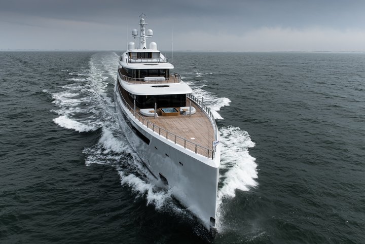 The owner of the ground-breaking VIVA set the target of keeping the environmental impact of this eco-friendly 94.00-metre Feadship at around the same levels as his previous, 32.00-metre shorter Feadship. One of the ways in which this highly ambitious goal was reached was through an exceptionally advanced hybrid propulsion system that allows VIVA to travel a comfortable 12 knots on diesel-electric power. Painted in a special pearl-white livery, the hull was designed, engineered and built to be as efficient as possible and reduce the engine power needed to power her. Little wonder VIVA was named Motoryacht of the Year in 2022.