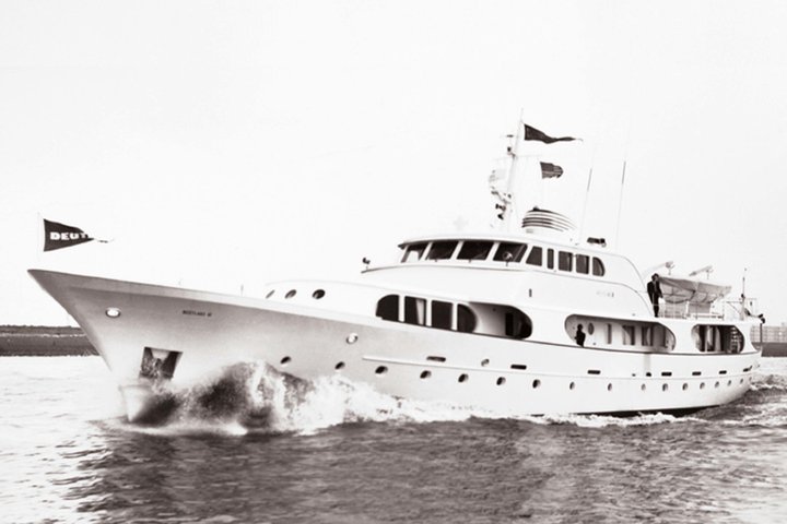 The 44.80-metre Westlake III, launched in 1966, was the first Feadship to have a fully-raised wheelhouse. She was advertised by Feadship in America as such: “Experienced, discriminating yachtsmen look to Feadship for the finest in quality, design and seaworthiness. 147’ Westlake III is capable of world cruising in safety and comfort. One of the largest new yachts built in recent years. May we assist you in selecting your new yacht?”