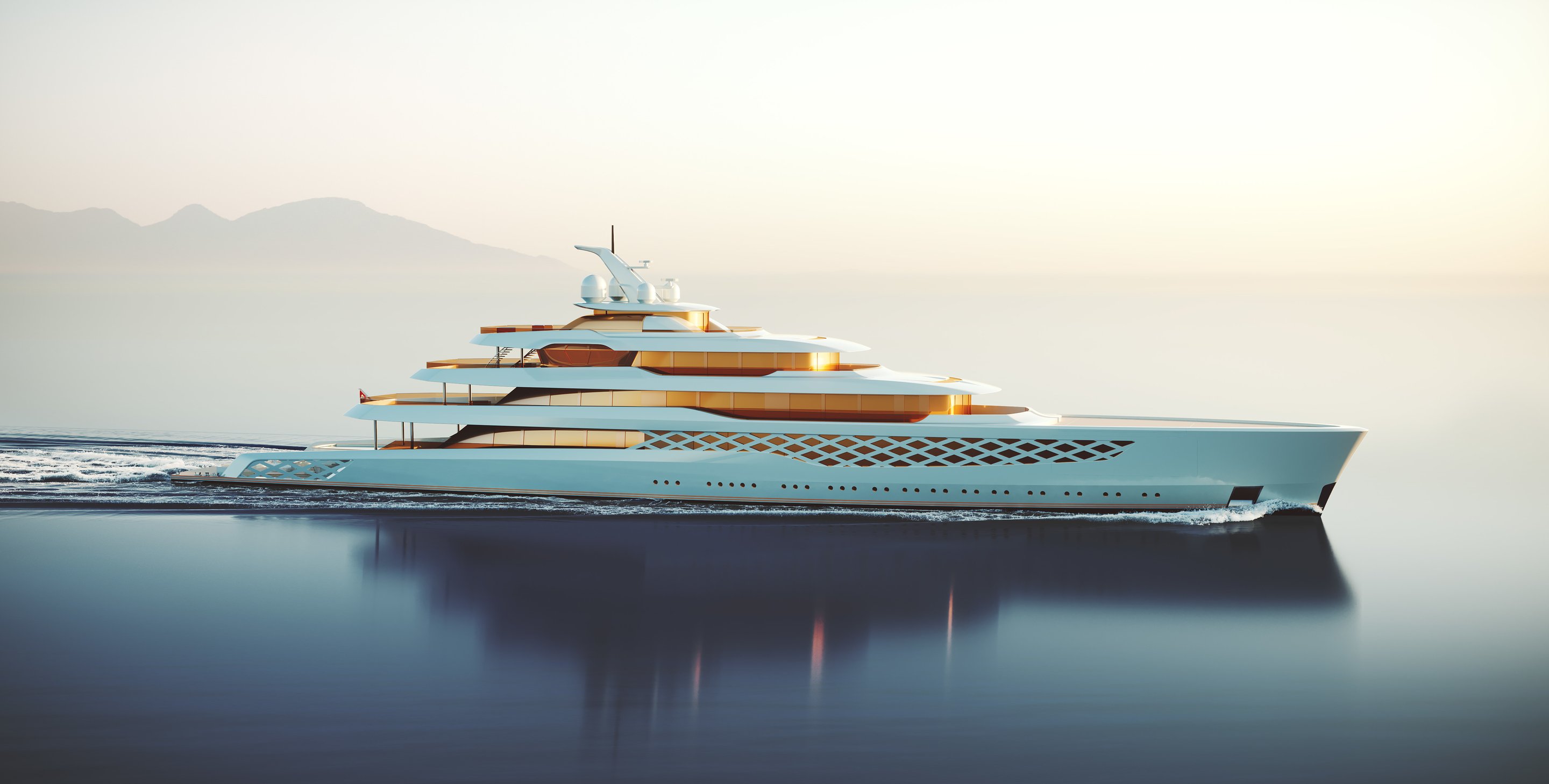 Freedom was devised for people looking to create their own Feadship exterior and interior without being intimately involved in the complex underlying technical matters. Created for the fictional combination of Freddy Mercury and Forrest Gump, the 109-metre Project FG allows for wild partying at night, peaceful relaxation during the day and the chance to play table tennis outdoors in all weathers. The Sports Yacht offers a fresh take on how an exceptionally swift Feadship might look with an open wheelhouse and mega-sleek exterior. State-of-the-art propulsion using water jets rather than propellers adds to the fast flavour. Imagined for an eco-conscious rock star exploring fresh frontiers, the 110-metre Escape features a sub, myCopter, moonpool, solar panels galore and, oh yes, a herb garden.