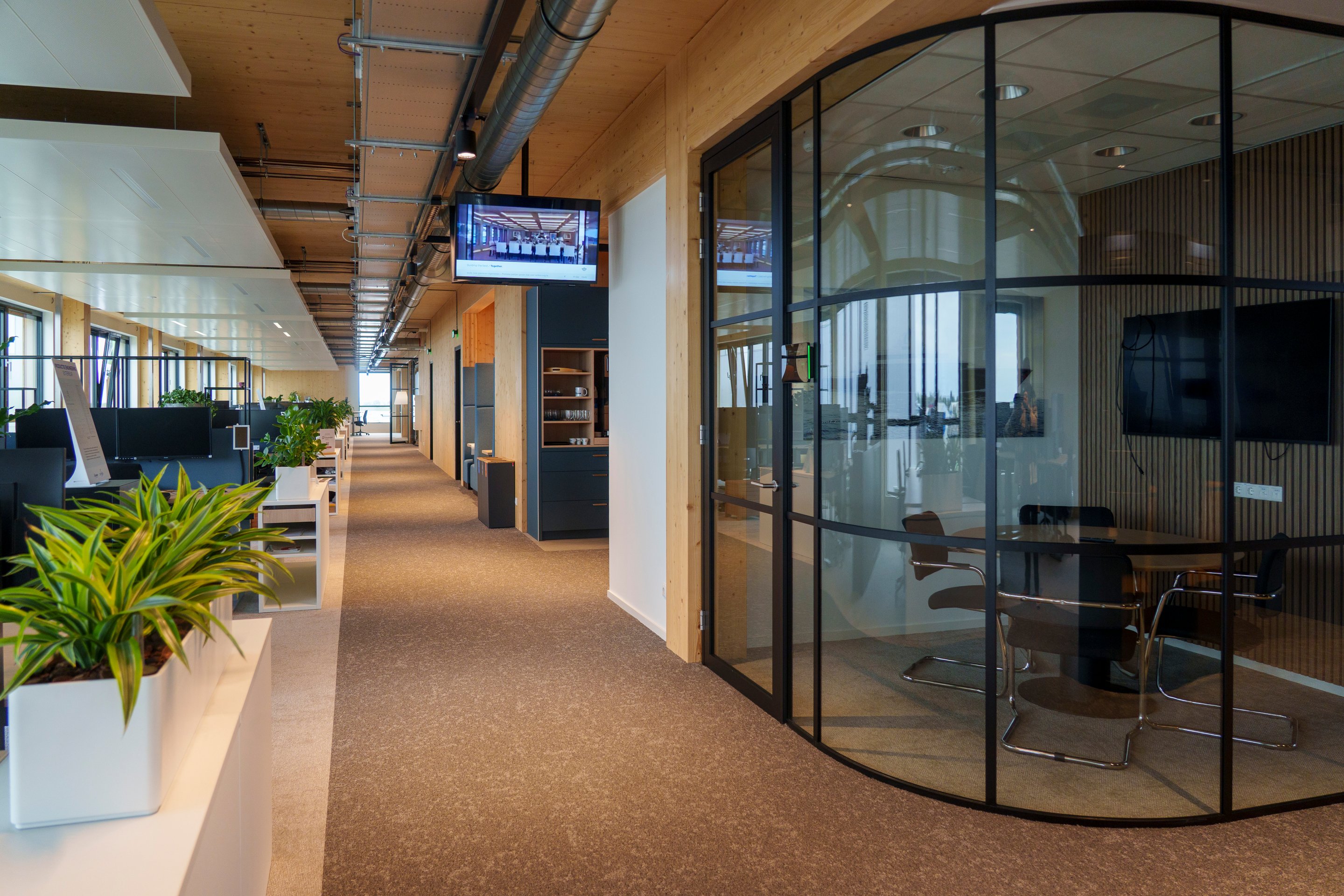 Over the past seven years, the Makkum yard has undergone a major transformation. A second dock hall was completed in 2018, followed by new workshops and, this summer, the delivery of the striking 2,820 m² office. Built entirely from wood, the three-storey structure is designed to be demountable and reusable. It is connected to one of the yard’s original buildings – the former joinery workshop – by a 17-metre bridge constructed by the yard’s own metalworkers, a fine example of in-house craftsmanship and teamwork.