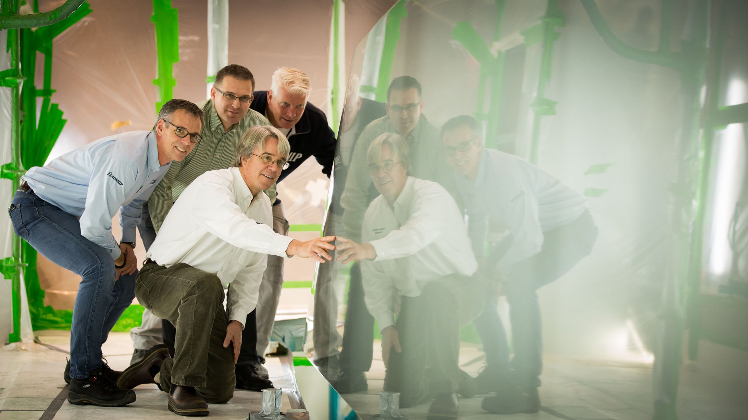 It made for an impressive sight to see this human machine of craftsmen at work in their climate-controlled tent spanning some 22,500 cubic metres. They used special mixing machines and, for the first time, electrically-charged spray guns to get all the metallic flakes in perfect order and achieve the thickest possible layer.
