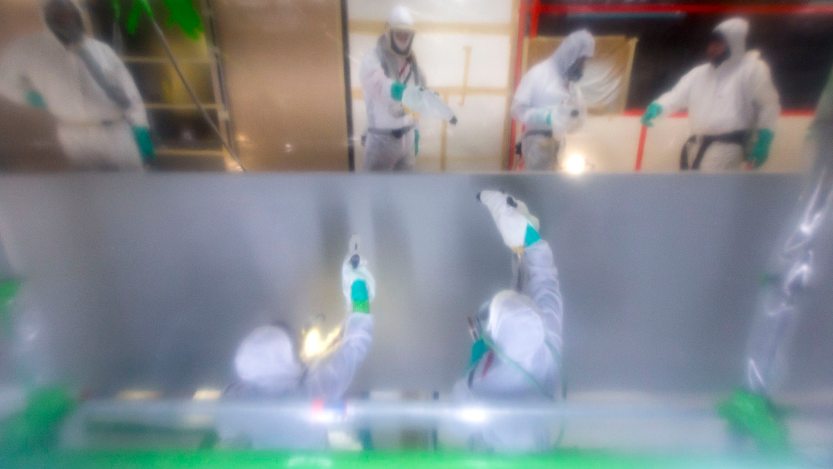By the time the team got to work, it consisted of 46 specially trained personnel: 21 spray painters, 21 ‘helpers’, three overall managers and one paint maker. Together they worked as a single unit that took care of spraying a particular section of the hull and superstructure in a single day, always heading in the same direction. Starting at five in the morning and working for as long as it took, their goal during these long but ultimately hugely rewarding sessions was to ensure every part of the area in question was painted in exactly the same way without even using tape lines.