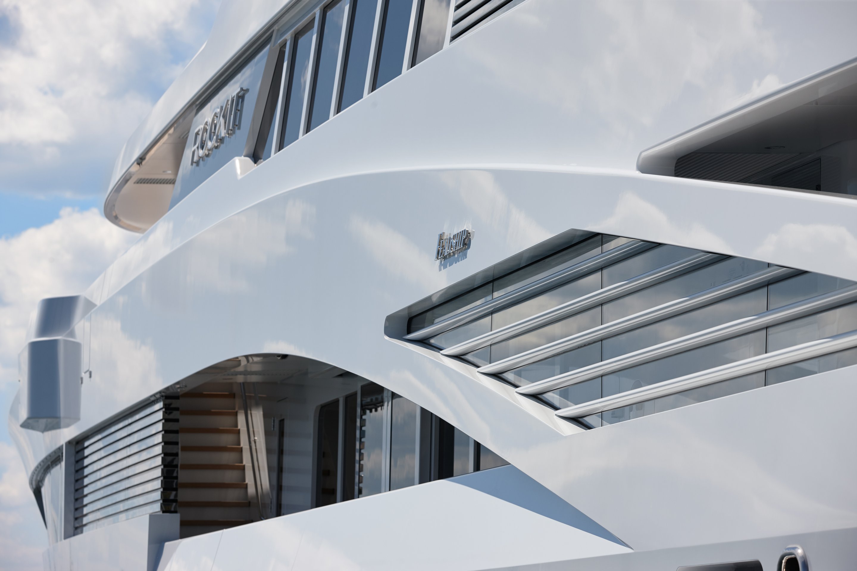 While tours of ROCK.IT’s amazingly detailed classic modern interior will be strictly reserved for a select group of invited guests, we’re sure that all visitors to the show will love seeing the sleek and sporty exterior. The striking first impression everyone has when they first see ROCK.IT’s curvaceous lines and lavish use of glass is very deliberate. The owner had never built a superyacht before and fell in love with the idea of having a Feadship after chartering one for a holiday. But it had to be very distinctive indeed!