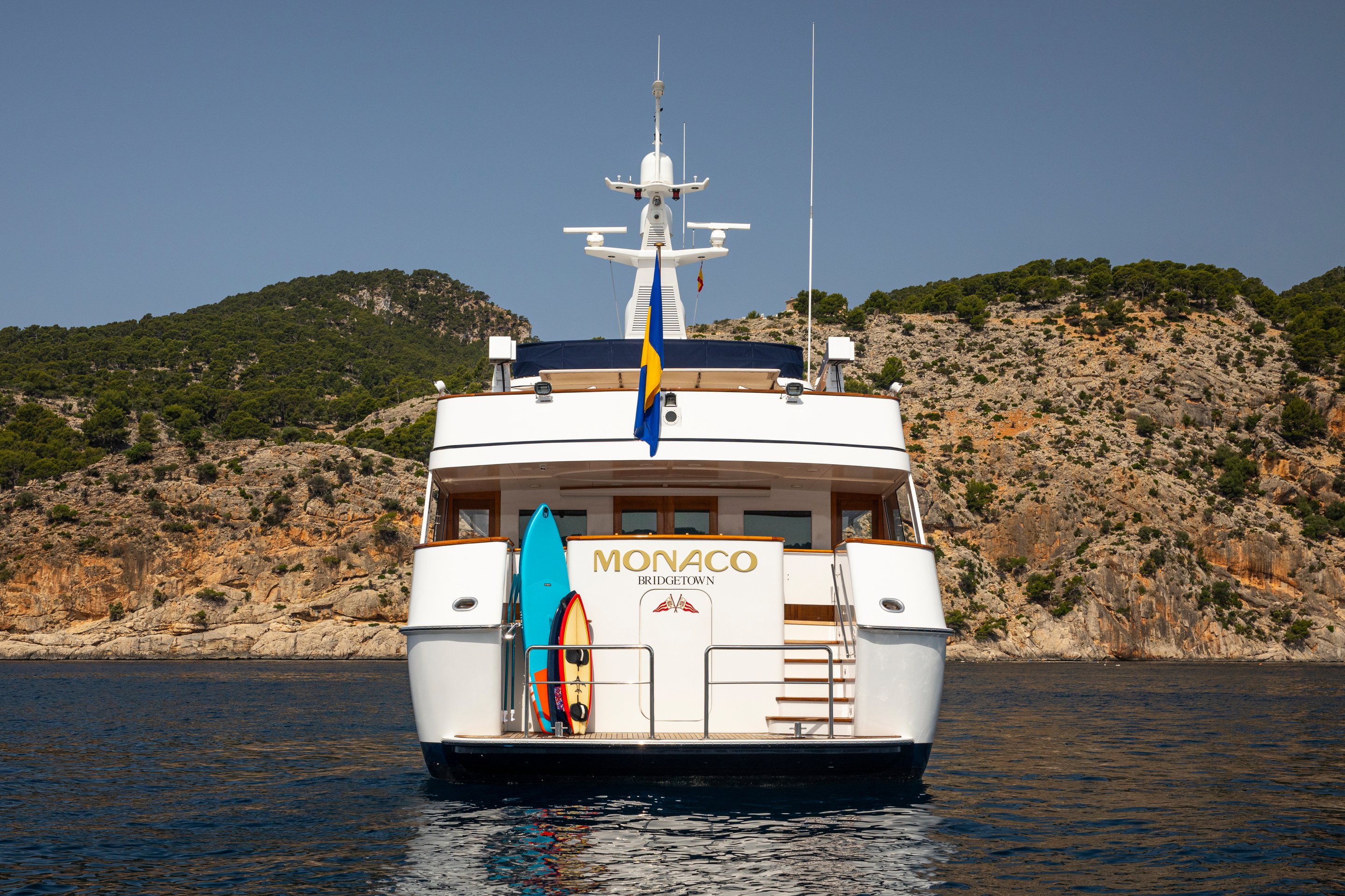 Impeccably maintained for the past forty years, Monaco has lost none of her authentic character. The only addition to her vintage lines is a swim platform and aft stairs for easier access to the sea, which add modern utility to the original design. During a refit in 2016, she had a full exterior repaint, new generators and the Caterpillar D348 main engines were rebuilt to bring them back to zero hours. With a top speed of 15 knots, she can cruise comfortably at 10 knots.