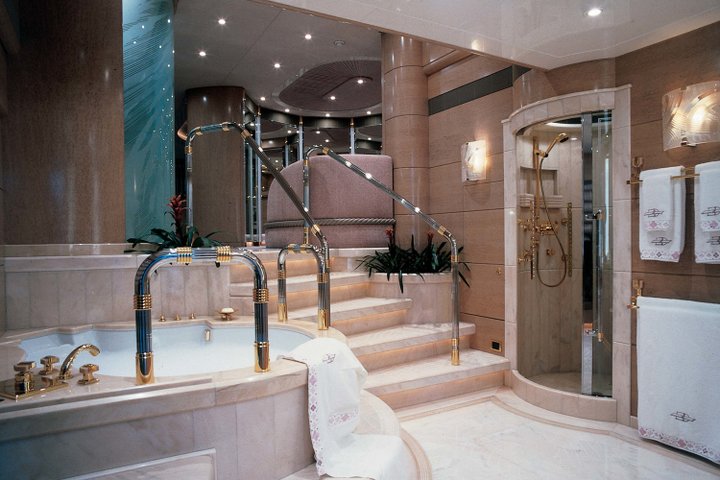 To ensure absolute privacy, De Voogt painstakingly created a sophisticated traffic flow system for both inside and out that allows guests to reach the sun deck without intruding on the owner’s space. The yacht’s incredible 120,000-litre fuel capacity (30 per cent greater than most yachts of this size) and extensive storage systems can support ocean explorations of up to six months. The yacht is also laid out for helicopter operations.